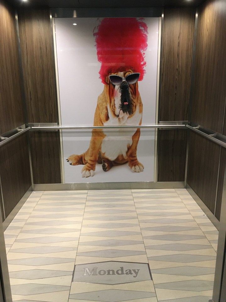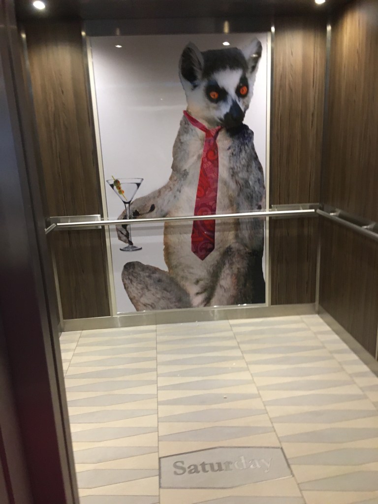 It’s easy to lose track of what day it is when you’re having so much fun! They update the days on the elevator daily.